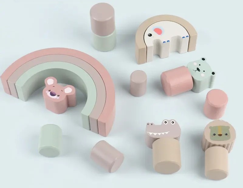 Περιλαμβάνει έναν ξύλινο ελέφαντα, ο οποίος λειτουργεί ως βάση για τα πολύχρωμα μπλοκς ισορροπίας. Τα μπλοκς έχουν σχήμα ουράνιου τόξου, προσφέροντας μια ευχάριστη και ελκυστική εμφάνιση.