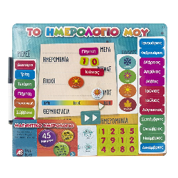 Пратећи дневну рутину, деца уче дане у недељи, месеце, разумеју континуитет времена и коначно перципирају јуче, данас и сутра, прошлост и будућност. 45 папирних магнета подржавају децу у комуникацији са људима око себе о предстојећим догађајима, празницима, викендима и још много чему.