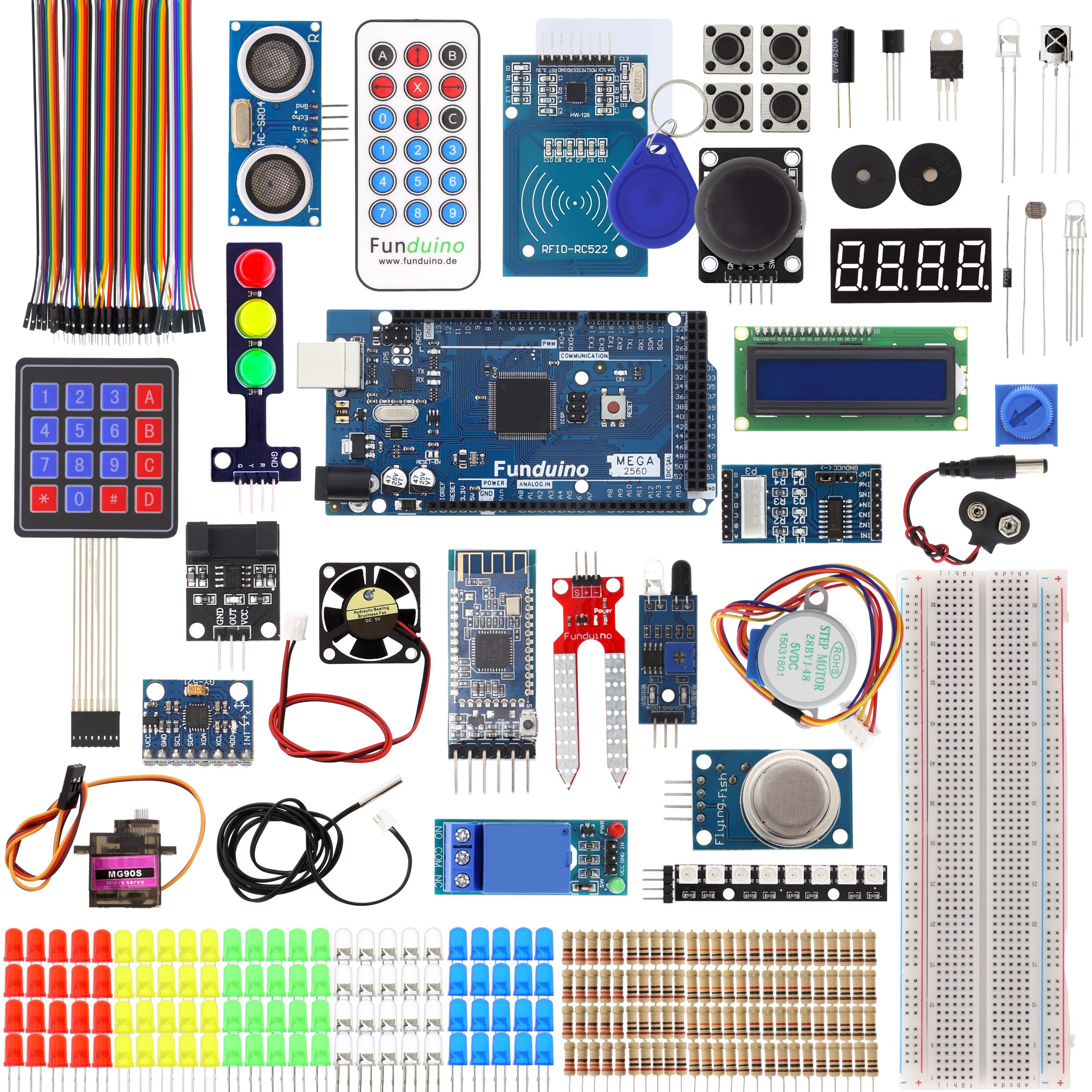 Уместо насумично одабраних електронских компоненти, Funduino се ослања на савршено координисан избор компоненти које се могу комбиновати једна са другом како би се створили одлични пројекти. Зато у почетном комплету нећете наћи бескорисне компоненте, већ само корисне и узбудљиве!